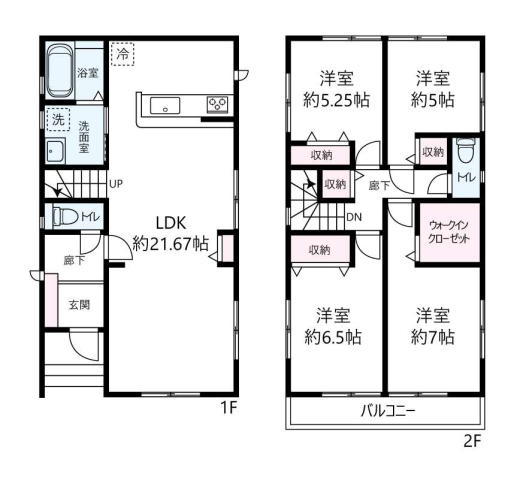 | 間取 | 4LDK (LDK21.6帖、洋室7帖、洋室6.5帖、洋室5.2帖、洋室5帖) | ||