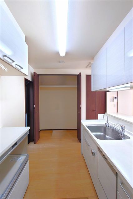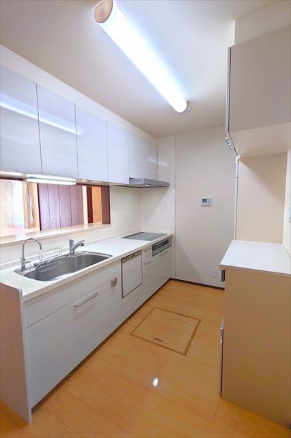 食洗機とカップボード付きの機能的なキッチンスペースは、家族とのコミュニケーションが取りやすい対面仕様です!