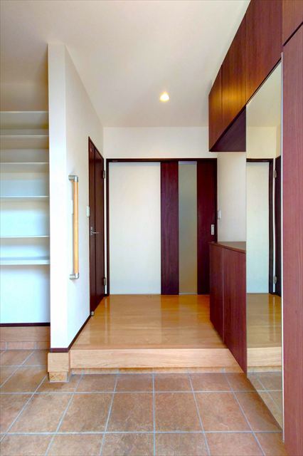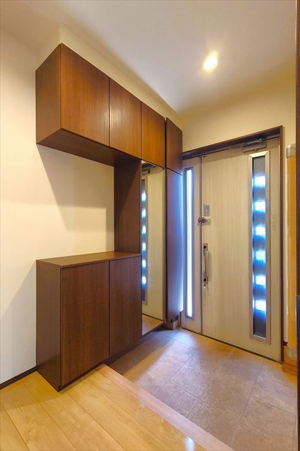 シューズインクローク付の広々とした玄関です!全身鏡も備え付けられており、出かける際、身だしなみチェックができます!