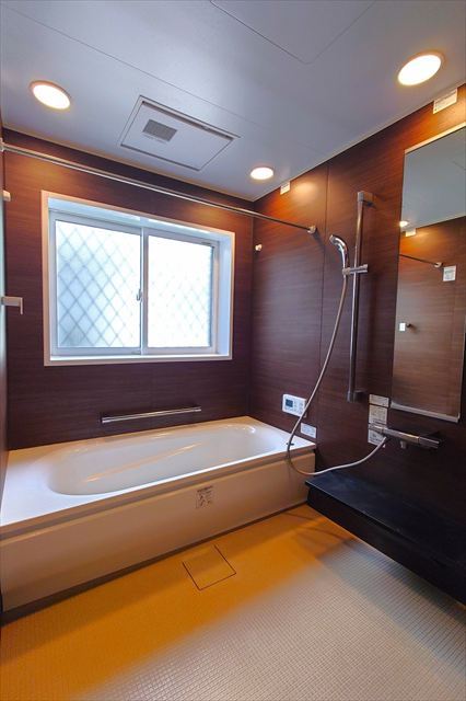 足を伸ばして1日の疲れを癒しゆったりできるバスルーム!入浴後は窓を開けてしっかりと換気ができます。