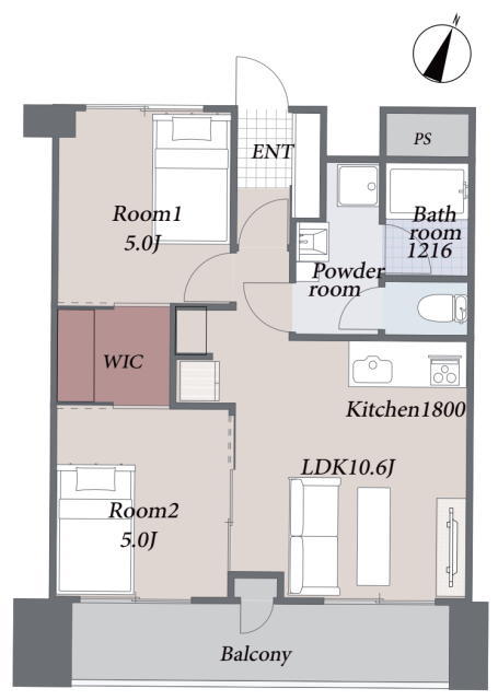各洋室から利用できるウォークスルークローゼット付き2LDK!