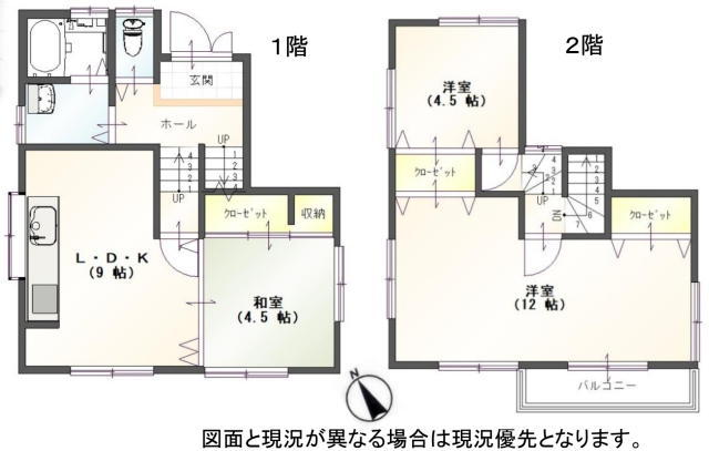 | 間取 | 3LDK (LDK9帖、和室4.5帖、洋室4.5帖、洋室12帖) | ||