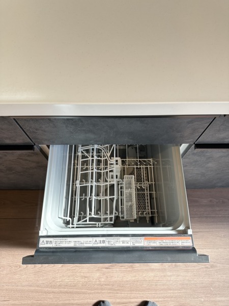 家事の時短に効果大の食洗器付き。高温でパワフルに洗い、温風乾燥します。手洗いよりも節水・節約が可能です。 一度使うと手放せないですよ!
