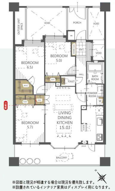 | 間取 | 3LDK + WIC (洋室6.5帖、洋室5.7帖、洋室5帖、LDK15帖) | ||