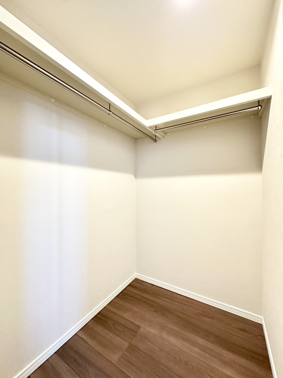 広々としたウォークインクローゼット! ゴルフバックや趣味の物など、まとめて収納できるのでお部屋を有効に使えますね! たくさんのお洋服やバッグを見やすく・取り出しやすく、慌ただしい朝もコーディネートを決めやすくなります。スーツケース等の大きな荷物の保管にも便利です。