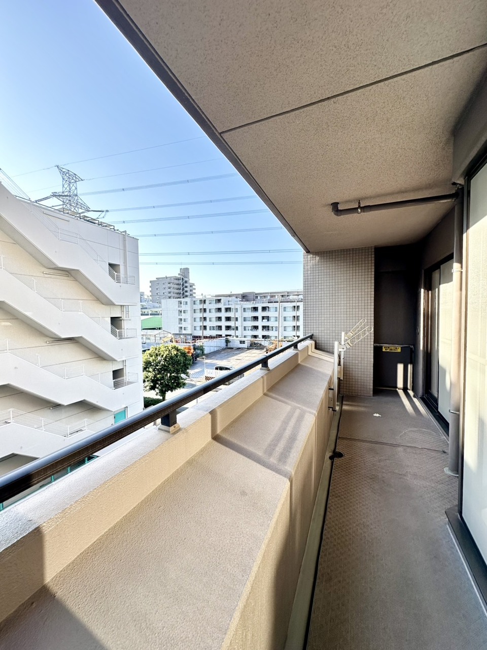 ベランダからの眺望です。 穏やかな日差しが広がる、落ち着きのある静かな空間ですね。