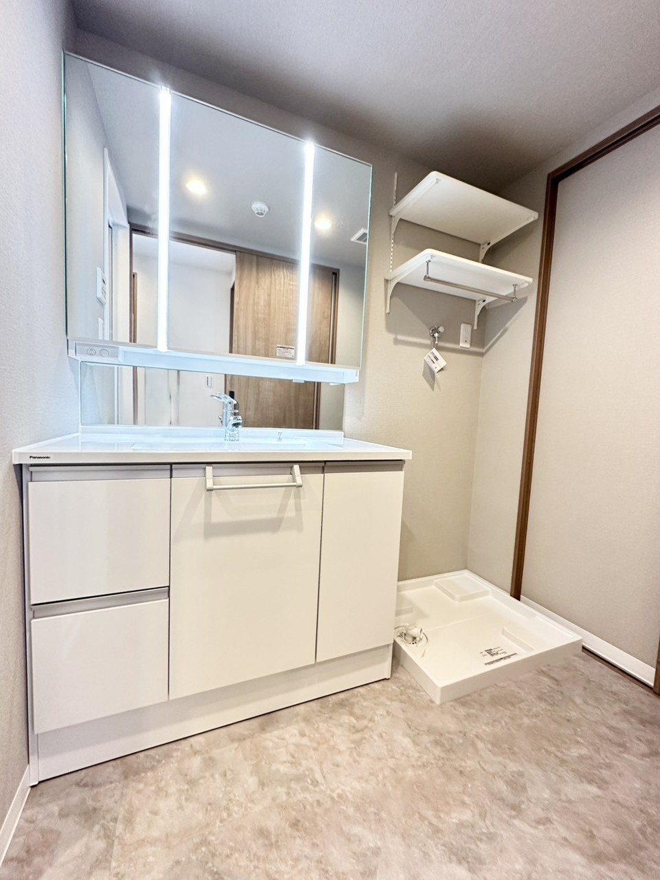 朝の身支度に便利なシャンプードレッサーはとっても便利です!シンク下の収納でアメニティ類のストックもバッチリ!