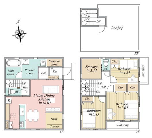 | 間取 | 3SLDK + SIC (洋室7帖、洋室5.4帖、洋室4.8帖、LDK18帖、S3.1帖) | ||