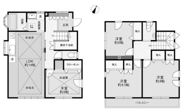 | 間取 | 4LDK (LDK14帖、洋室6帖、洋室6帖、洋室6.5帖、洋室8帖) | ||