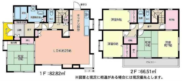 | 間取 | 5LDK (LDK25帖、和室8帖、和室6帖、洋室6帖、洋室6帖、洋室7帖) | ||