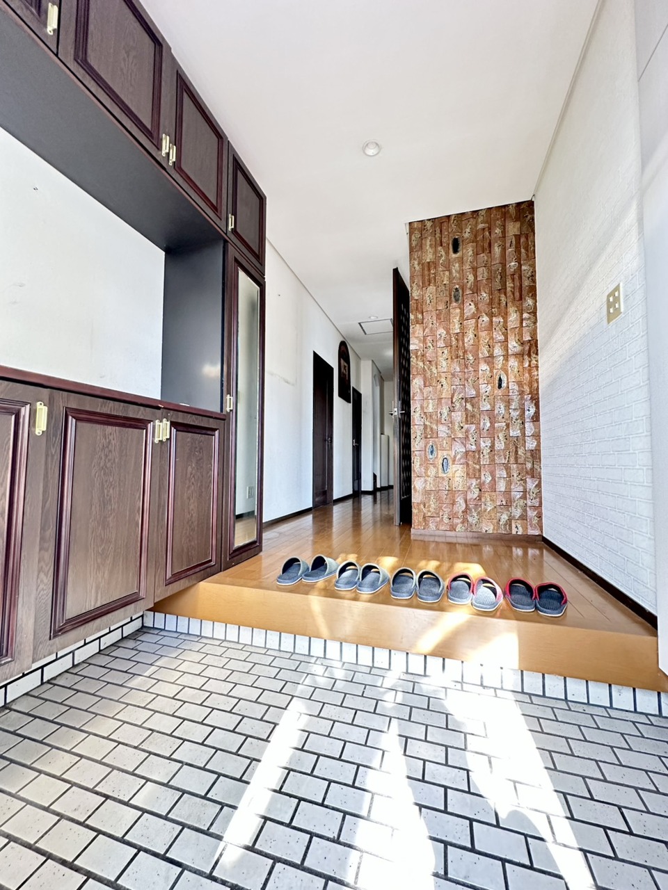 お家の顔である玄関ホール明るく、ゆとりのスペースに下足箱収納と傘立てがおけるスペースを確保!