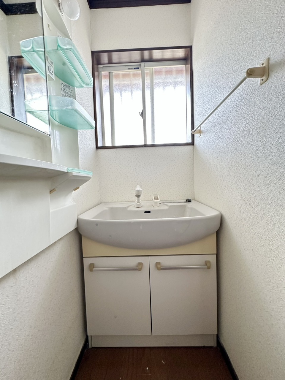 朝の身支度に便利なシャンプードレッサーはとっても便利です!シンク下の収納でアメニティ類のストックもバッチリ!