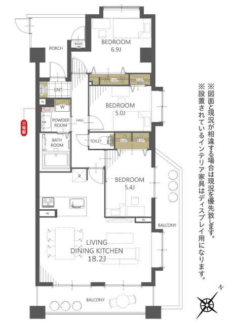 | 間取 | 3LDK (洋室6.9帖、洋室5.4帖、洋室5帖、LDK18.2帖) | ||