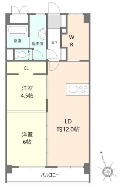 | 間取 | 2LDK (LDK12.0帖、洋室4.5帖、洋室6.0帖) | ||