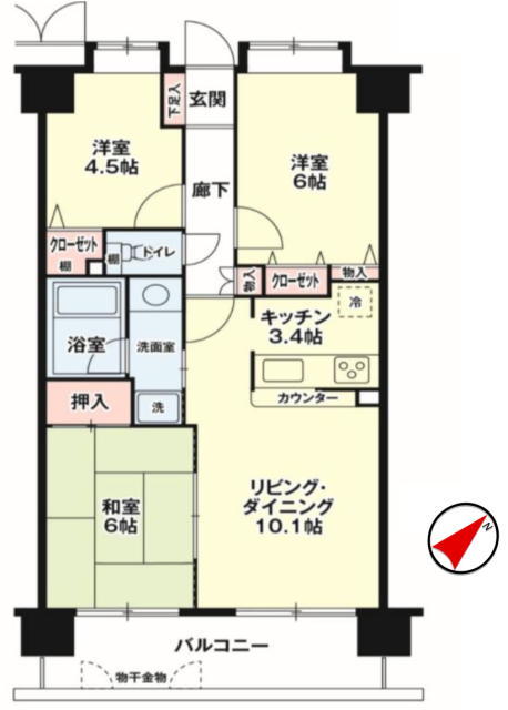 | バルコニー面積 | 9.72m² 南東向き | ||