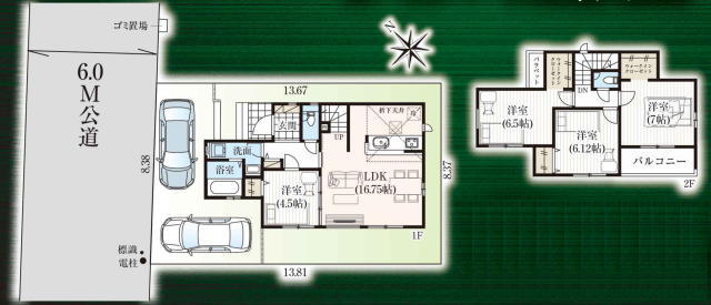 カースペース2台可、解放感ある6m公道面で車の出し入れもラクラク。