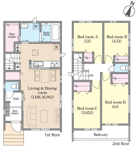| 間取 | 4LDK (LDK16.96帖、洋室5帖、洋室4.5帖、洋室5.65帖、洋室6帖) | ||