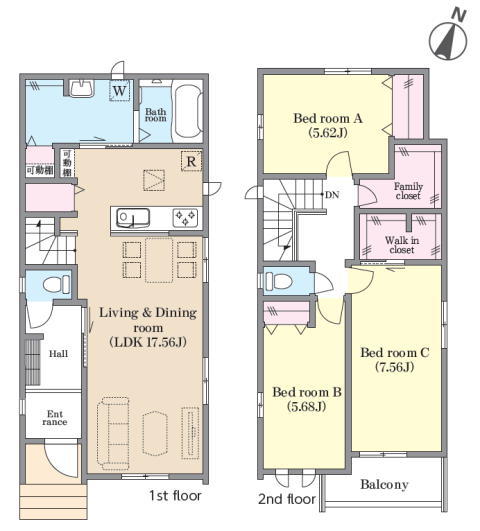| 間取 | 3LDK + WIC+FC (LDK17.56帖、洋室5.62帖、洋室5.68帖、洋室7.56帖) | ||