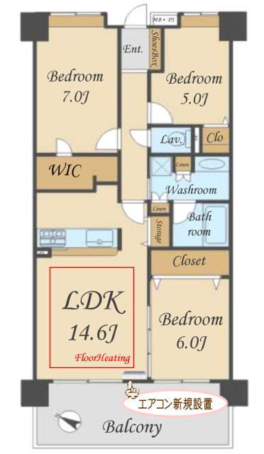 | 間取 | 3LDK+WIC (LDK14.6帖、洋室7帖、洋室6帖、洋室5帖) | ||