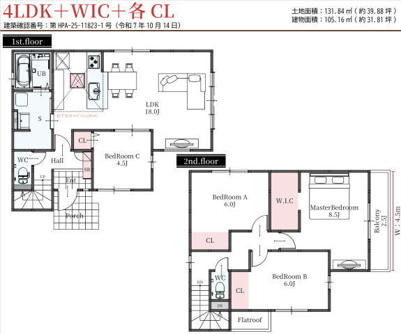 | 建築確認番号 | 第HPA-25-11823-1号 | 駐車スペース | 2台可(カースペース) |