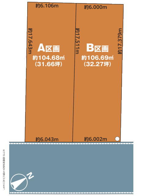 | 土地面積 | 104.68m² ~ 106.69m² 実測 | ||
