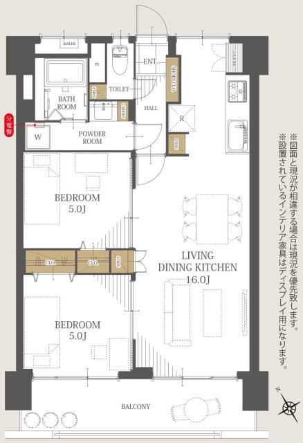 | 間取 | 2LDK (洋室5帖、LDK16帖) | ||