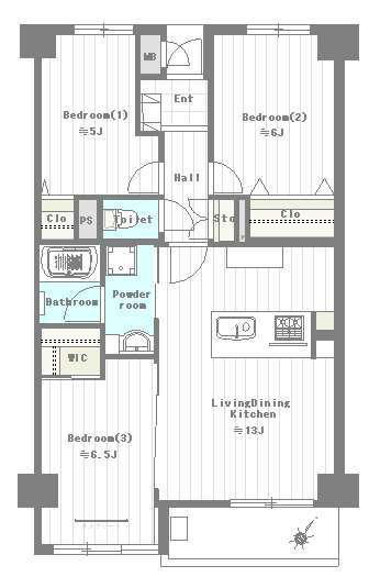 | 間取 | 3LDK + WIC (LDK13帖、洋室5帖、洋室6帖、洋室6.5帖) | ||