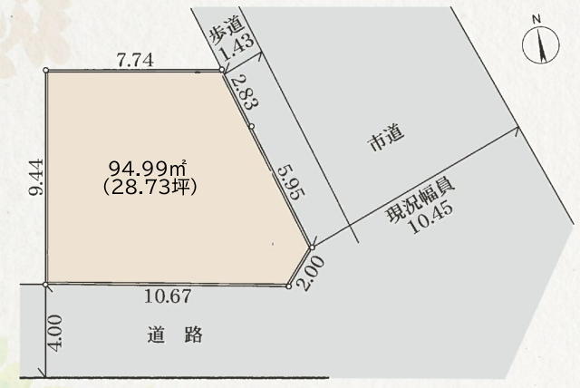 | 接道 | 北東側10.4M公道に接道 南側4M公道に接道 |
