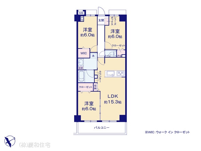 | 間取 | 3LDK + WIC (LDK15.3帖、洋室6.0帖、洋室6.0帖、洋室6.0帖) | ||
