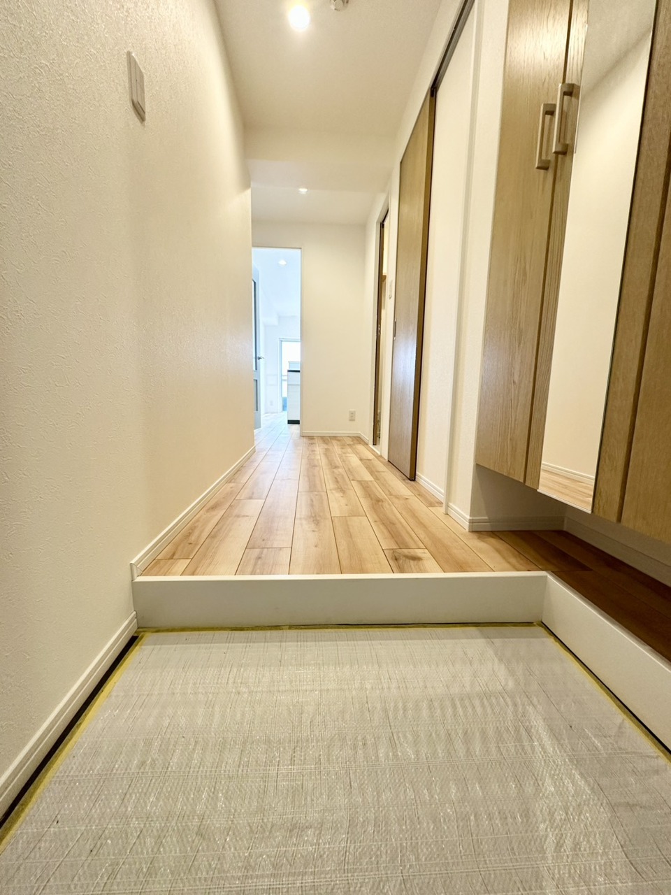 お家の顔である玄関ホール明るく、ゆとりのスペースに下足箱収納と傘立てがおけるスペースを確保!
