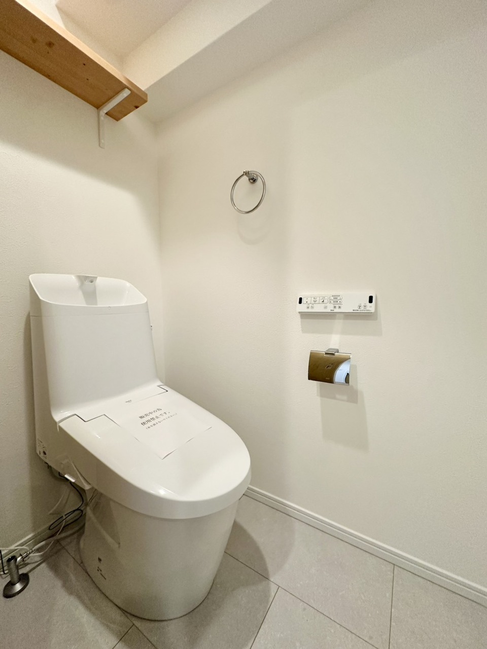 上部に収納棚があり、トイレットペーパーや掃除用具をスッキリ収納できます!