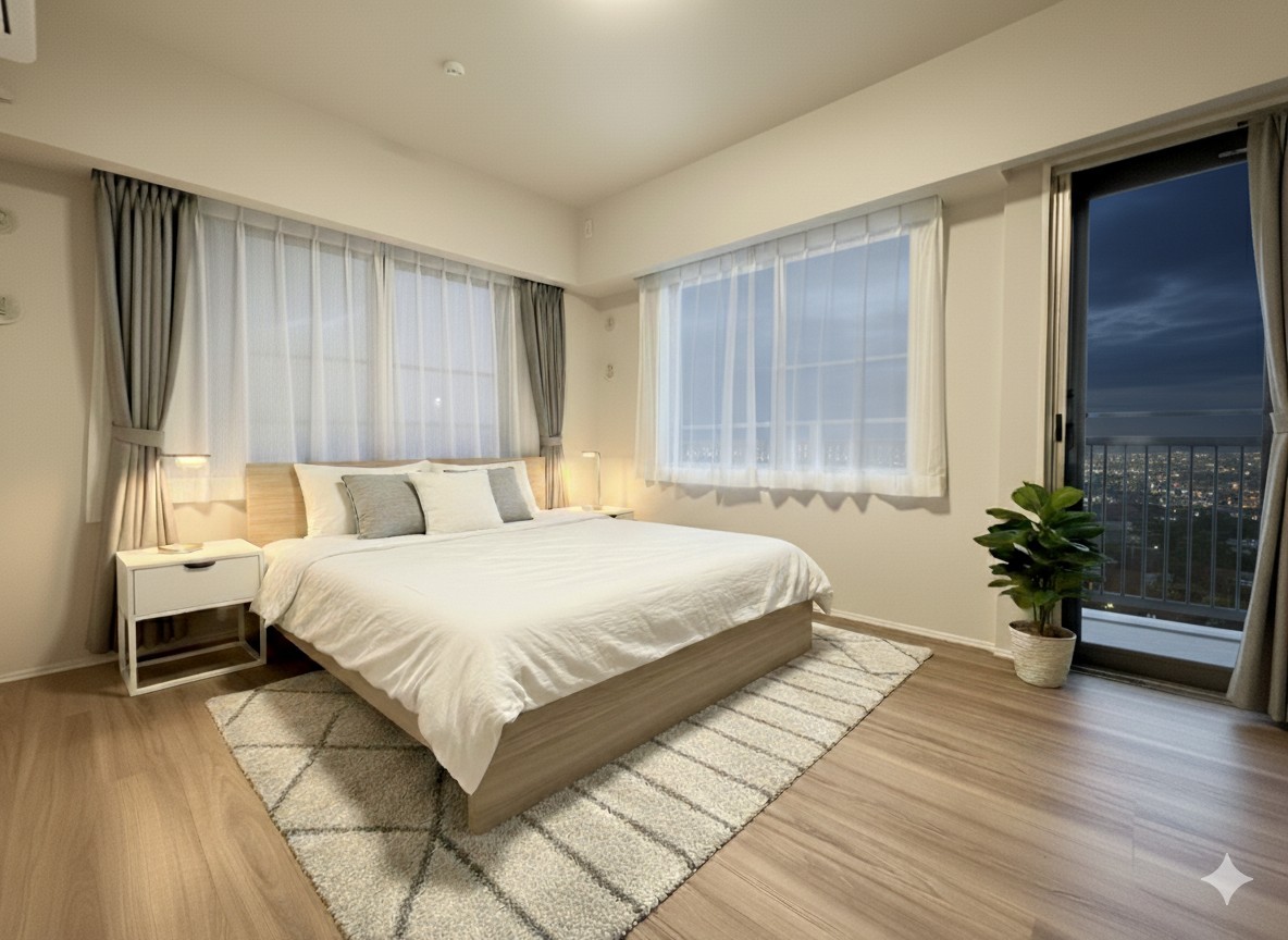 大容量の収納がある寝室。広々としたスペースでご家族の主寝室として、趣味のスペースなど多目的な用途に使用することができます! ※家具はイメージです。