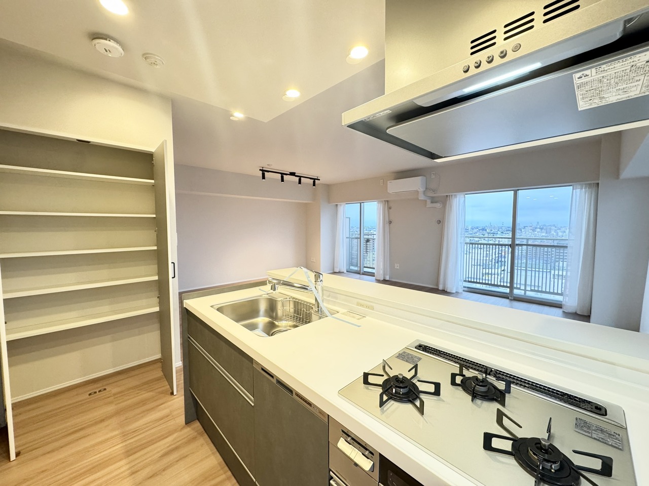 女性に大人気の対面キッチン!お料理しながらご家族とのコミュニケーションが取れる取れるのは対面だから出来ること! お小さいお子様を見守りながらの家事は安心ですよね! 食洗機も完備で食後の皿洗いが楽々です!