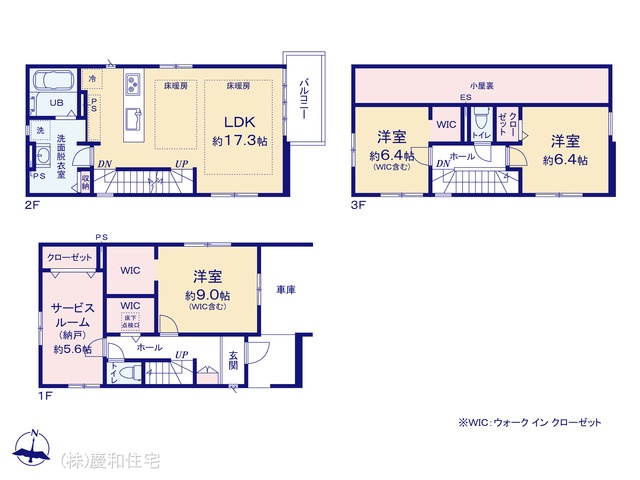 建物はウォークインクローゼット3ヵ所付き収納豊富な3SLDK設計。