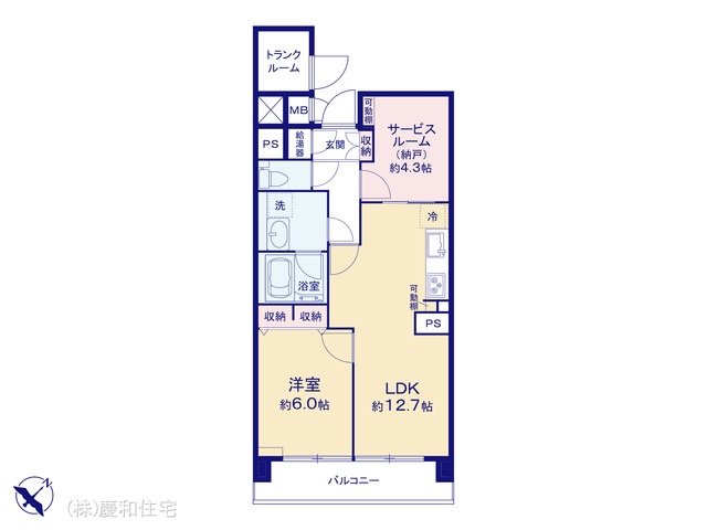 | 間取 | 1LDK+1S (LDK12.7帖、洋室6.0帖、S4.3帖) | ||