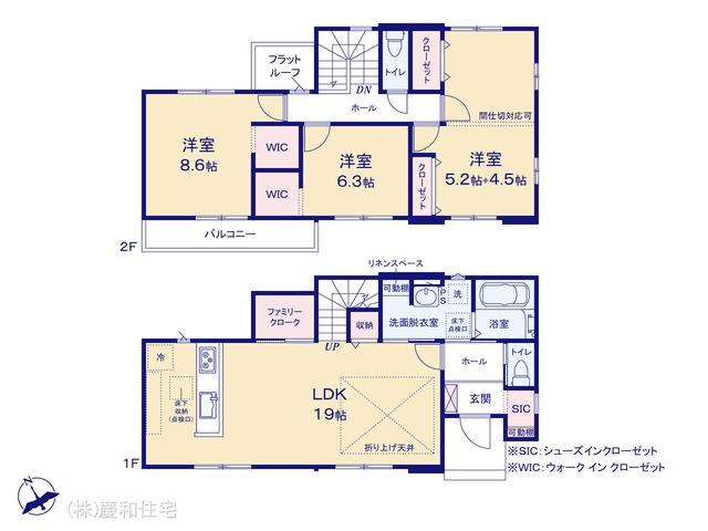 | 間取 | 3LDK + 2WIC+SIC+ファミリークローク (LDK19帖、洋室8.6帖、洋室6.3帖、洋室9.7帖) | ||