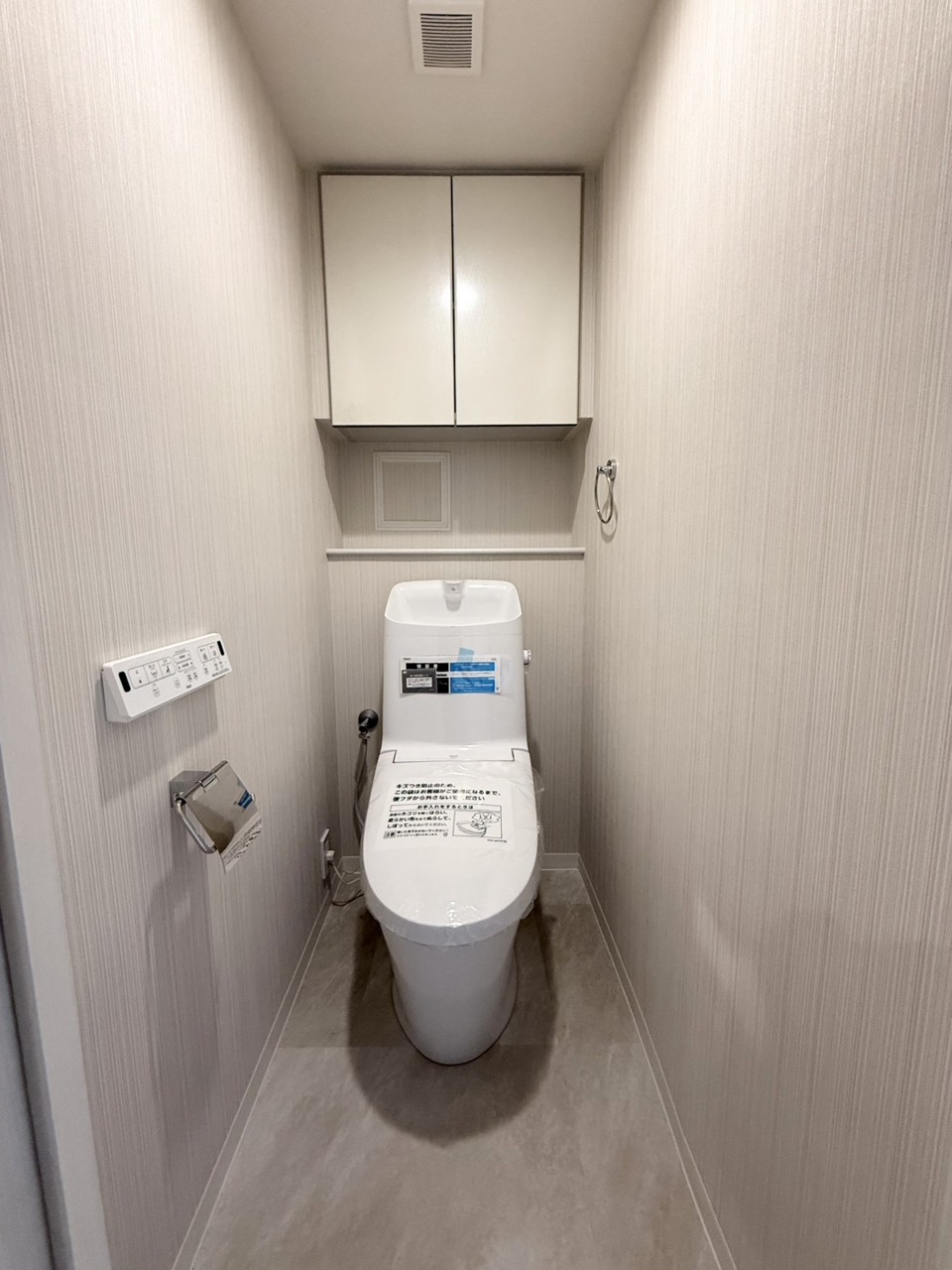 上部に収納棚があり、トイレットペーパーや掃除用具をスッキリ収納できます!