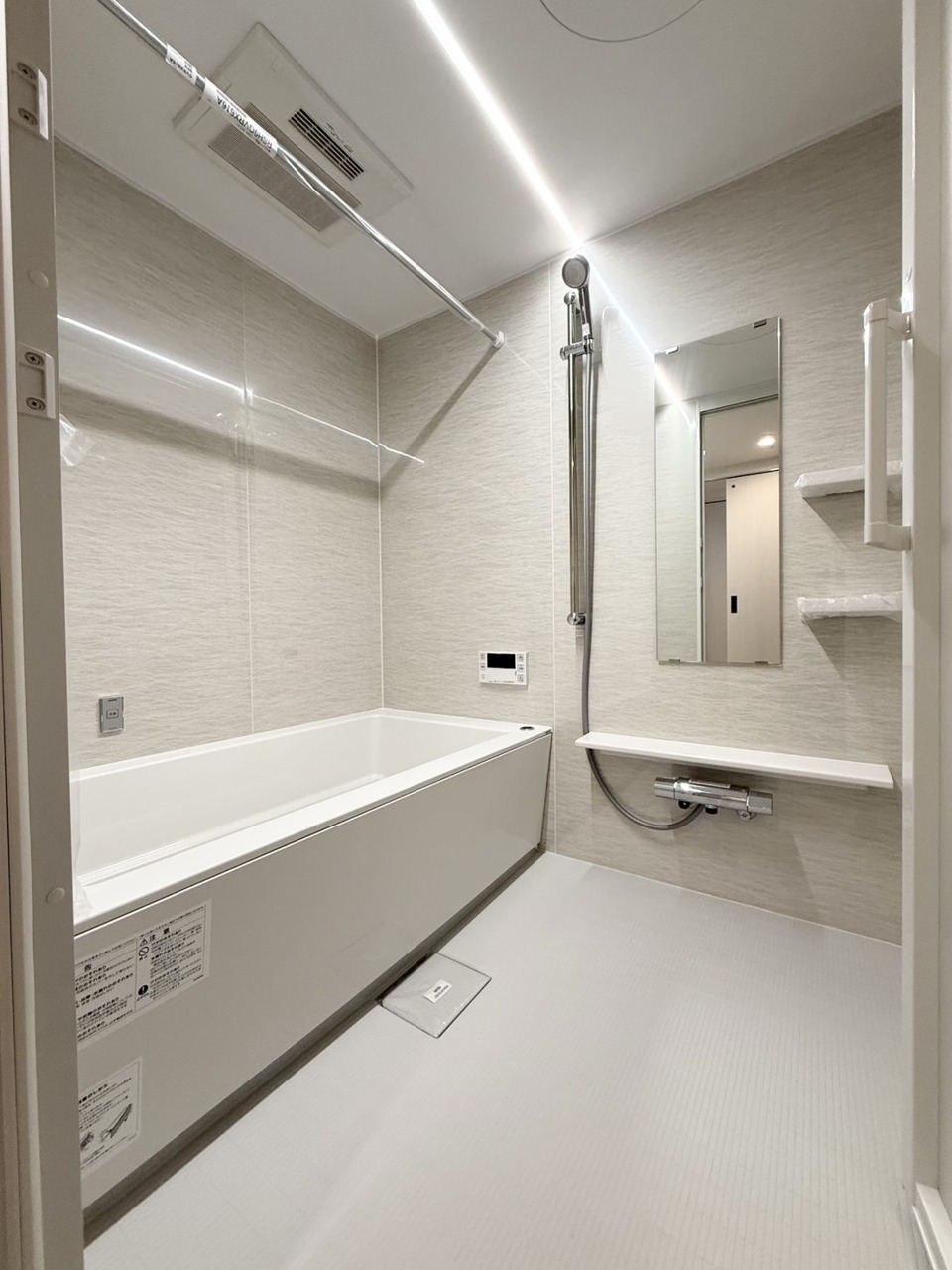 浴室換気乾燥暖房機能付きの浴室は、雨の日でも乾燥機能で洗濯物をカラっと乾かせます。自動湯はりや追い焚き機能を備えたオートバスで一日の疲れを癒していただけます。