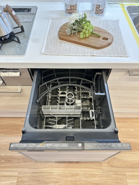 家事の時短に効果大の食洗器付き。高温でパワフルに洗い、温風乾燥します。手洗いよりも節水・節約が可能です。 一度使うと手放せないですよ!