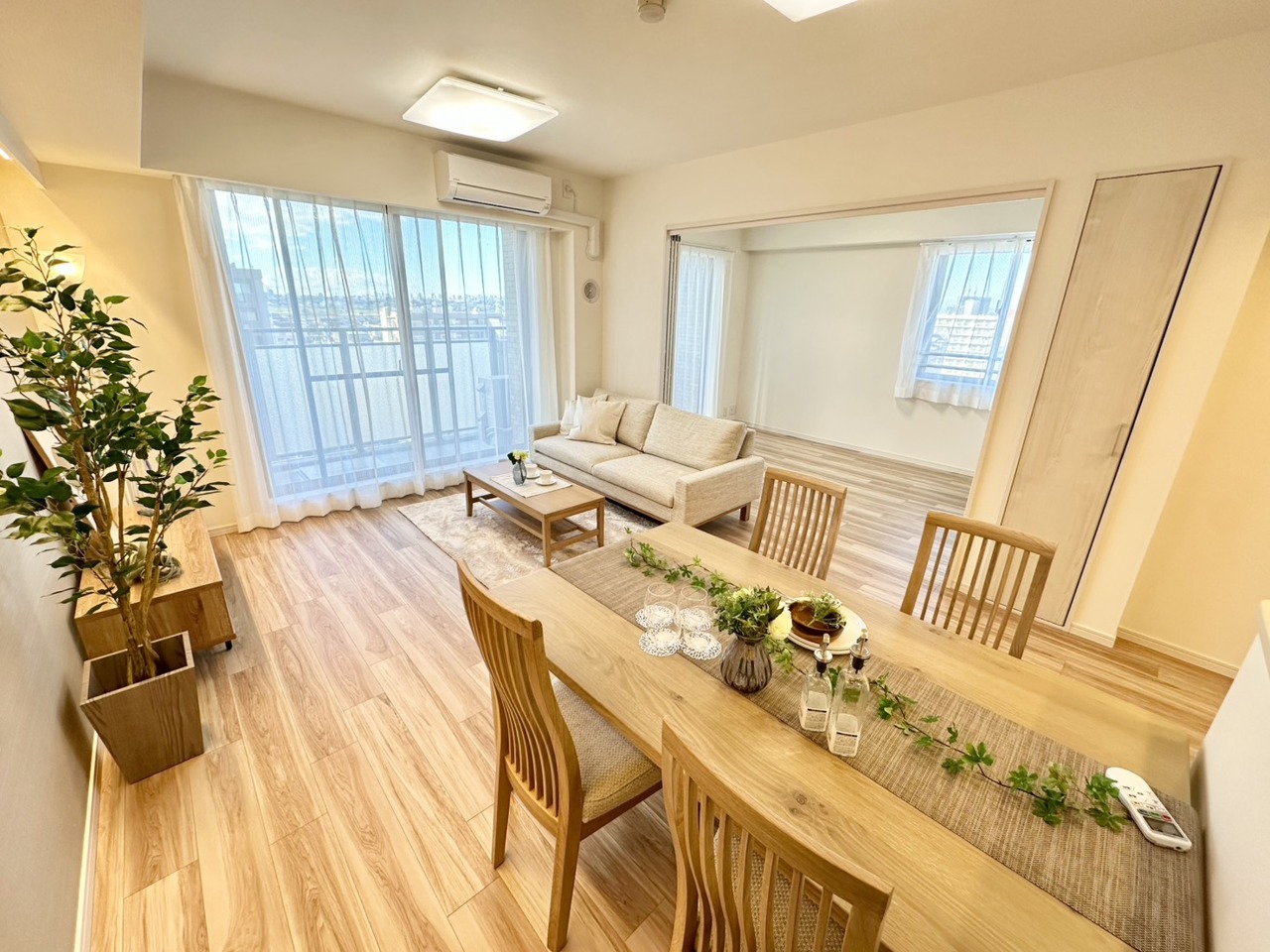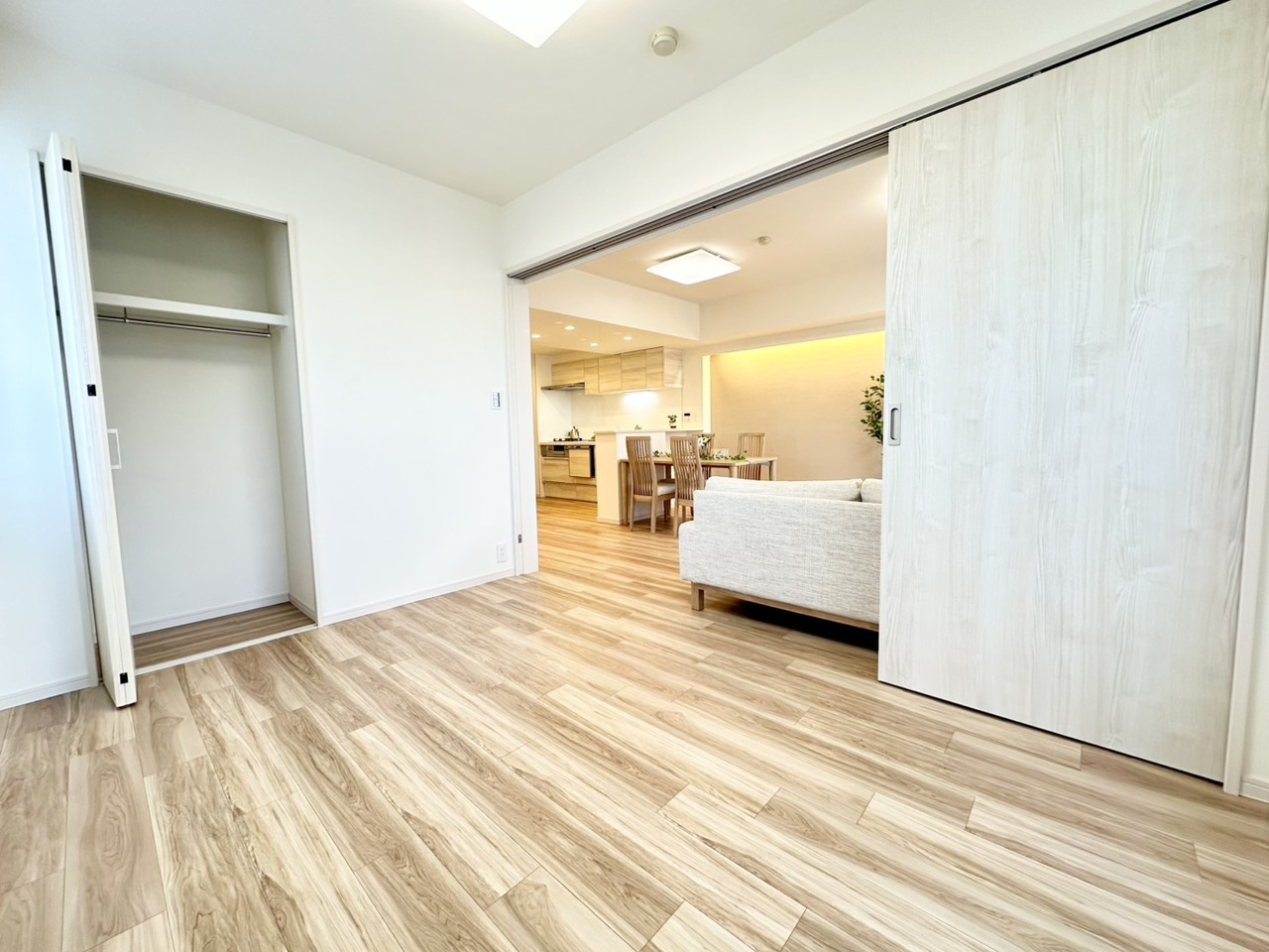 リビングと続間の洋室は戸を開放する事で一体で広くお使い頂けます! もちろん居室や客間としても使えますので、使い方はあなた次第っ!!