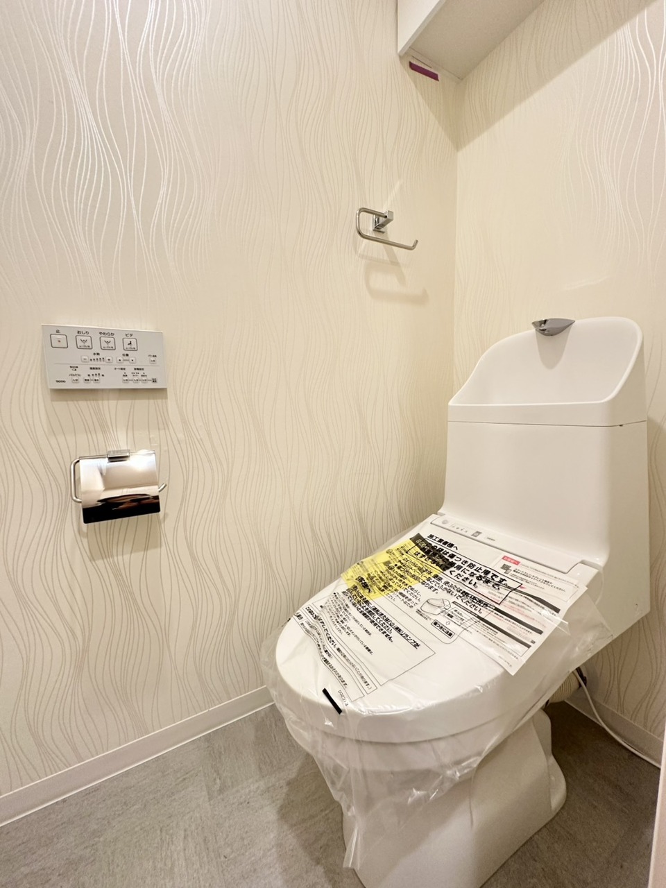 ウォシュレット付きです! 上部に収納棚があるので、トイレットペーパー等のストックもバッチリです!