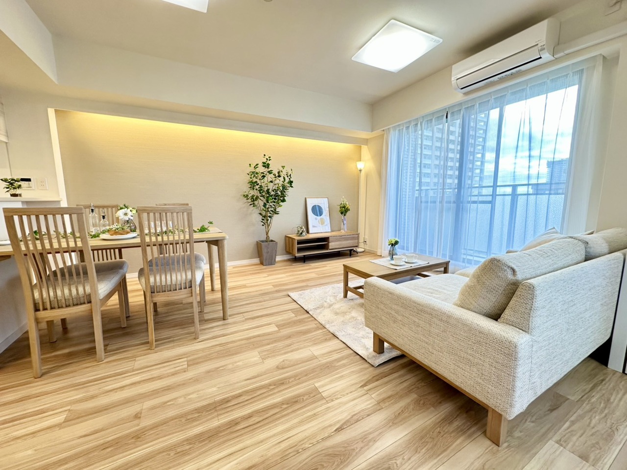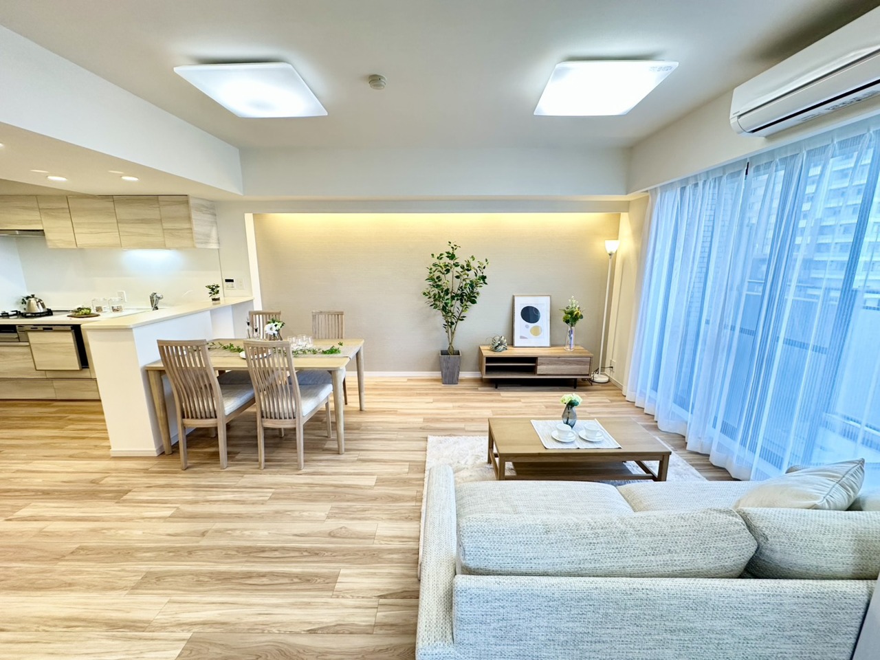 キッチンと統一感のある家具など設置し、お洒落な空間に!