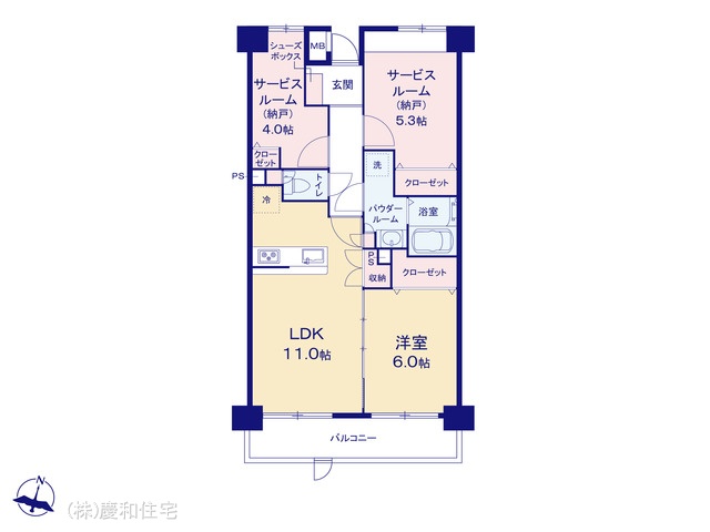 | 間取 | 1LDK+2S (LDK11帖、洋室6帖、S4帖、S5.3帖) | ||