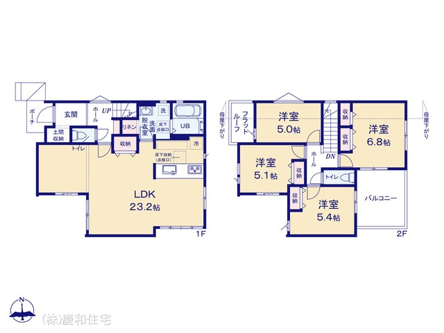 | 間取 | 4LDK (LDK23.2帖、洋室5.0帖、洋室5.1帖、洋室5.4帖、洋室6.8帖) | ||