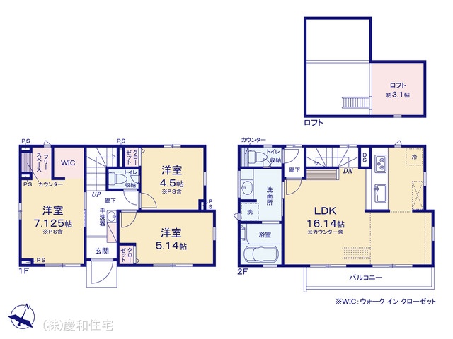 | 間取 | 3LDK + WIC+ロフト (LDK16.14帖、洋室4.5帖、洋室5.14帖、洋室7.12帖) | ||