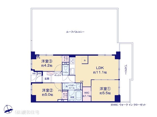 | 間取 | 3LDK + WIC (LDK11.1帖、洋室5.5帖、洋室5.0帖、洋室4.2帖) | ||
