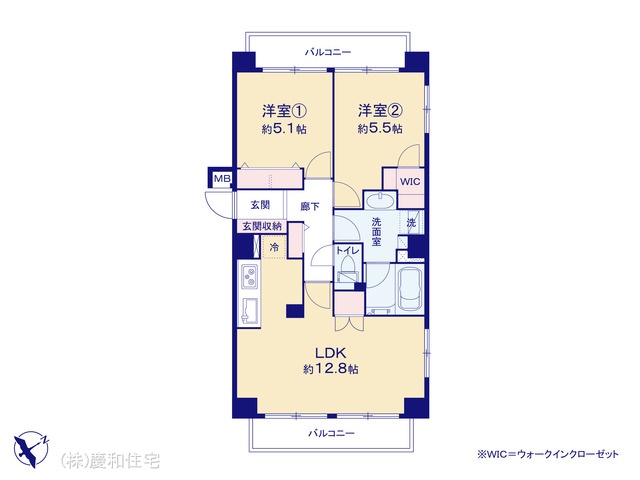| 間取 | 2LDK + WIC (LDK12.8帖、洋室5.1帖、洋室5.5帖) | ||
