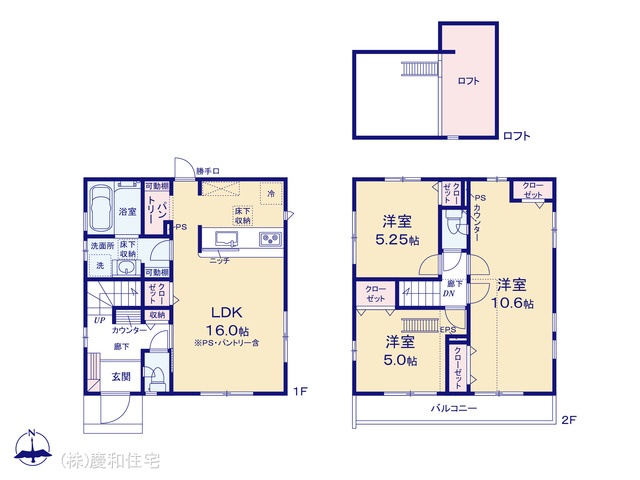 | 間取 | 3LDK + ロフト (LDK16.0帖、洋室5.25帖、洋室5.0帖、洋室10.6帖) | ||