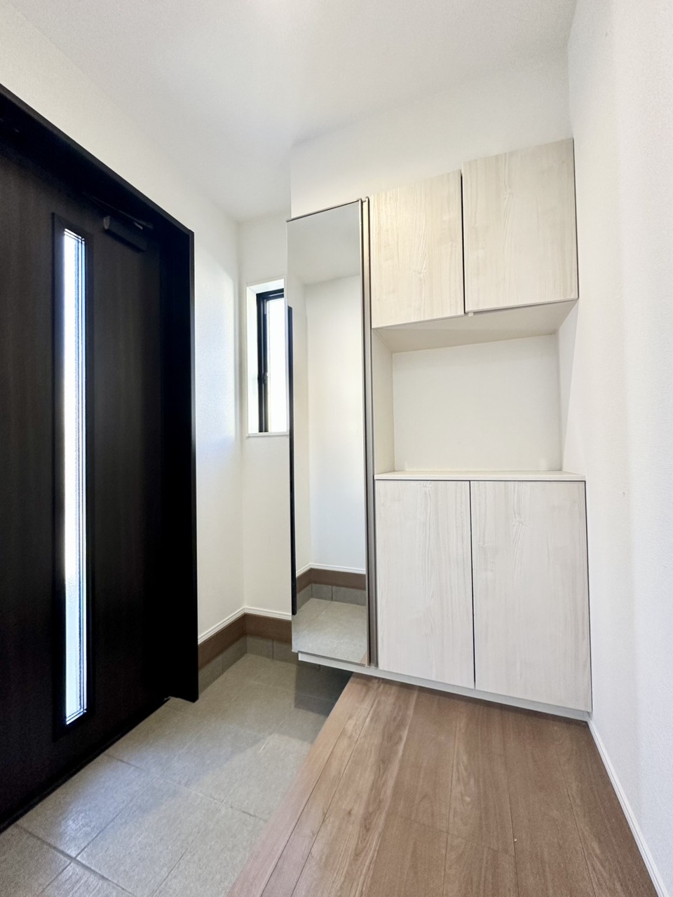 お家の顔である玄関ホール明るく、ゆとりのスペースに下足箱収納と傘立てがおけるスペースを確保!