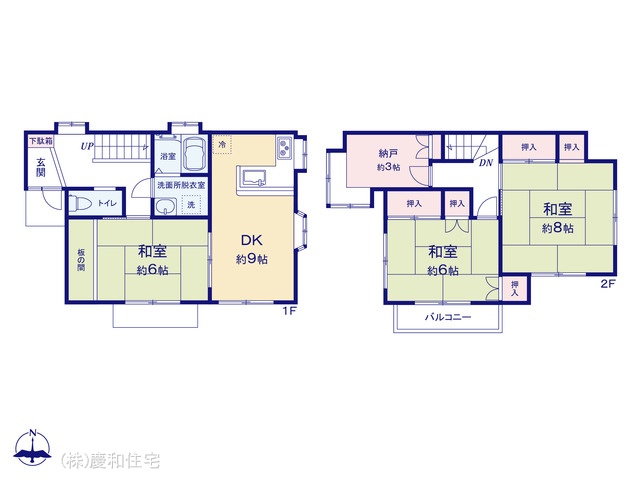 | 間取 | 3DK + 納戸 (DK9帖、和室6帖、和室6帖、和室8帖) | ||